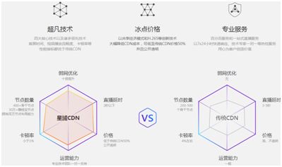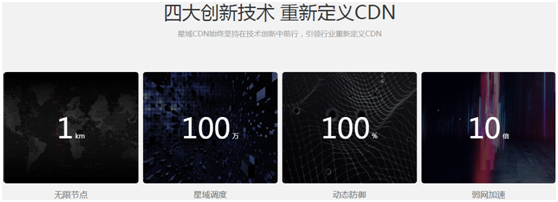 公司打造的新一代互联网内容分发网络星域CDN,首创无限节点、弱网加速、动态防御等技术,使数据传输距离更近、速度更快、成本更优;可满足不同类型使用场景的技术需求,提供一站式解决方案,联合爱奇艺、小米、熊猫直播、BILIBILI等合作伙伴,打造互联网加速生态。