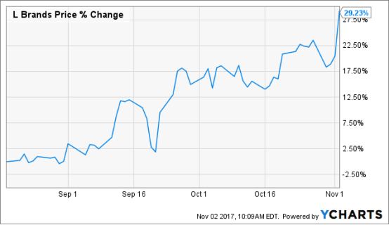 我们相信,在接下来的几个月里,这将是LB的股价走势。对这只股票来说,积极的可比销售增长是至关重要的。目前公司已经完成了这一关键指标的转正,加深了我们对其在2018年初回到5%-10%的可比销售增长的信心。