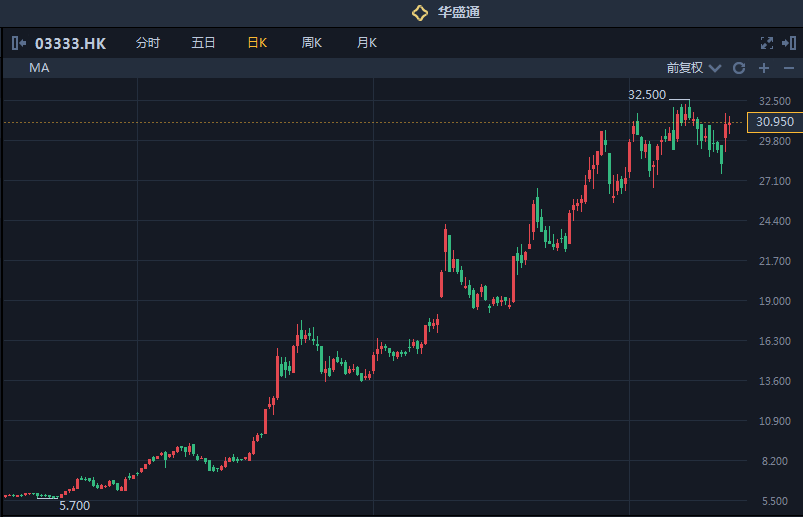 今日开盘后,中国恒大的股价涨幅高达9.38%,以30.9港元收盘。今年以来,中国恒大的股价由5.04港元/股左右上升至30.9港元/股,涨幅高达513.1%,说明投资者对恒大发展的未来预期看好。