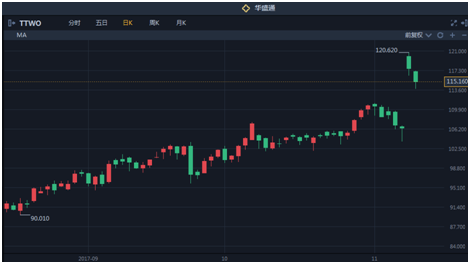 随着GTA5的荣誉登顶,公司财报的喜人预期,公司股价也是创出历史新高,而且近期更是跳空高开。