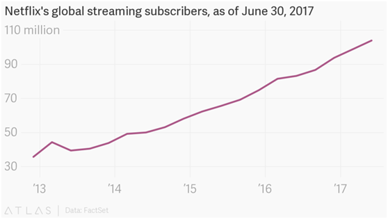 作为迄今最大的流媒体服务商,奈飞将成为有线电视绑定服务爆发之后最大的受益者。其他有线电视玩家CBS, NBC,FOX都没有很强的品牌营销能力。