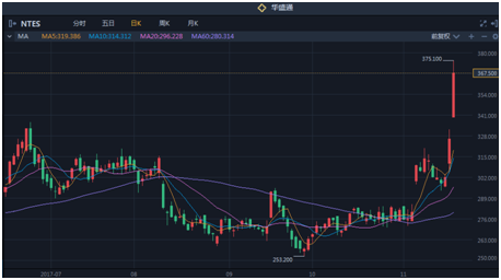 近日作为我国互联网另一巨头网易发布财报显示,公司收入、利润双双好于预期,周五晚上开盘便一路上涨,最终报收367.50美元,市值逼近500亿美元。