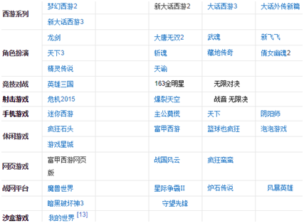 公司业务主要包含游戏业务,主要以自我研发的多人在线角色扮演游戏MMORPG,以及手机端游,同时拥有暴雪等游戏公司产品代理权;互联网媒体业提供门户资讯内容、社交等服务;广告业务通过公司网站及其他产品服务客户,并于中国电信合作。