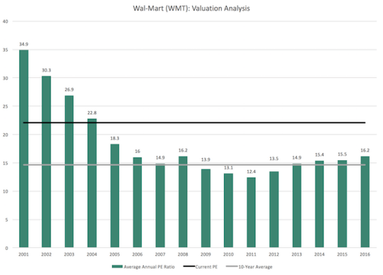 过去几个季度中,沃尔玛的电商业务迅速增长,投资者开始意识到沃尔玛有能力线上零售上与亚马逊等巨头一较高下,这也使沃尔玛股票更加抢手,同时股价和估值也相应提高。
