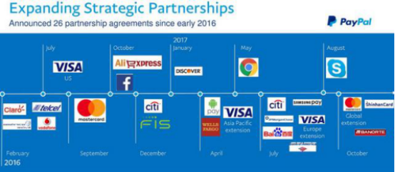 下图是PayPal近两年的合作伙伴。