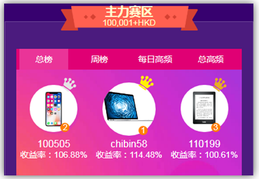 在这热烈的市场氛围中,我们实盘大赛主力赛区的TOP3也默默实现了三位数的收益,而此时距离开赛仅20天时间。目前“chibin58”表现优异,以114.48%的收益率摘得桂冠,“100505”和“110199”分别已106.88%和100.61%的收益率表现紧随其后。