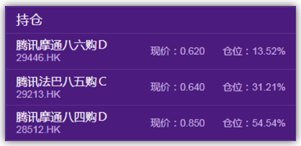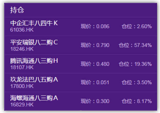 3.在满仓的情况下,“Chibin58”选择了实际杠杆较低的窝轮,从而在一定程度上控制风险。