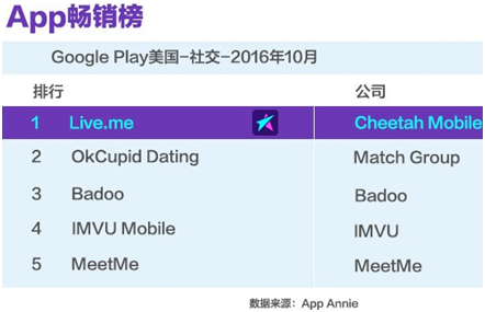 移动娱乐产品Live.me在第三季度稳居Google Play美国社交畅销榜榜首,是美国时尚年轻人最喜爱的社交产品之一。除了美国地区,印度成为Live.me 增长最快的区域,Live.me 用户在印度呈现指数级增长,成为印度目前最大的直播类应用之一。