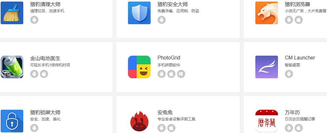 公司移动工具应用程序主要包括猎豹清理大师Clean Master、个性化桌面工具CM Launcher、猎豹安全大师Security Master 等。其中,个性化桌面工具 CM Launcher在 Google Play 商店94个国家的个性化榜单中排名第一。