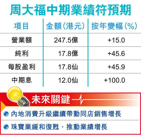 周大福中期财报符合预期,纯利增长强劲,获大行唱好,纷纷上调目标价。