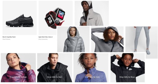 下面是在感恩节和黑色星期五周末耐克在美国网站上展示的图片。