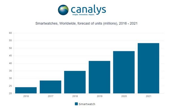 根据Canalys的数据,公司非常聪明的在假日期间推出一款智能手表。Canalys预计智能手表将从2017年的2800万块增长到超过5000万。
