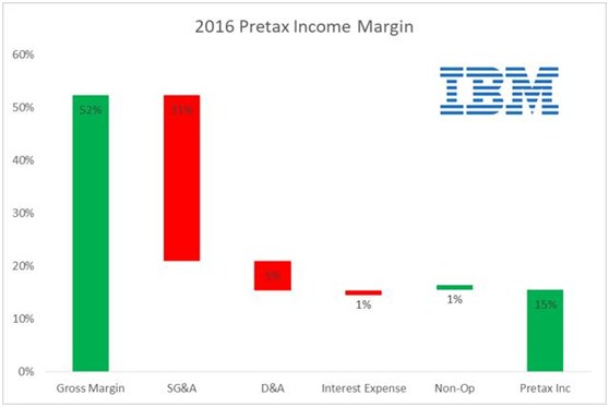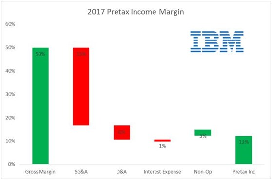 今年毛利率下滑了200多个百分点,也是IBM近些年来几乎最低的毛利率,说明公司产品的议价权不如以前。毛利率下滑不是一个好现象。