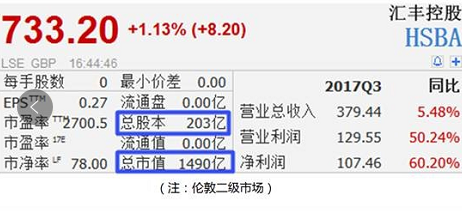 细心的投资者便会发现,汇丰在三地市场的总市值和总股本是一样的(汇率换算后)。