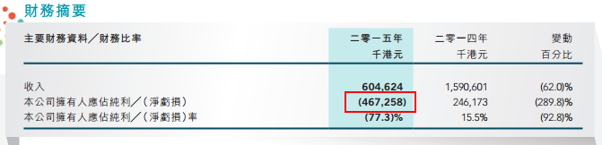注:2016年报的篇首“财务摘要”栏中已不敢披露亏损情况,故只得到损益表中寻找相关项目。
