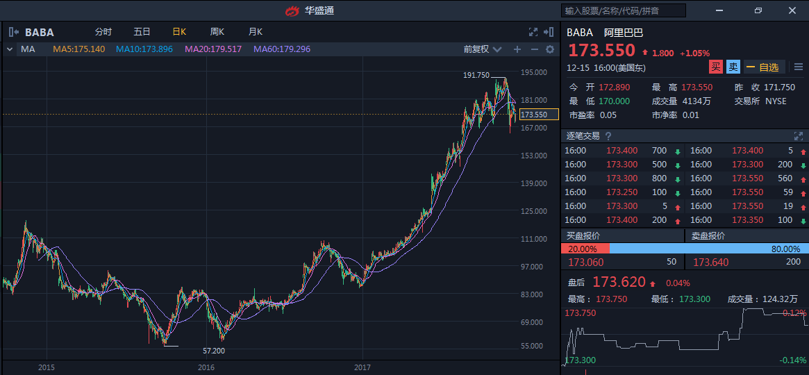 阿里初在美国上市时,股价表现相当耀眼,68元招股价,两个月内就近乎翻倍,最高见120元。2014年11月马云开口警告投资人期望切勿太高,第四季度业绩真不达预期值。另外,同时间中国国家工商总局针对淘宝发表假货报告,2015年阿里股价跌入谷底时,九月份跌至上市后新低57.2元。