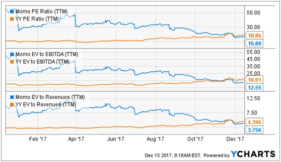 跟YY相比似乎不好解释陌陌的股价下跌,多项指标都优于YY,很难说其股价高估了。不过直播行业不确定性较大,竞争也激烈。