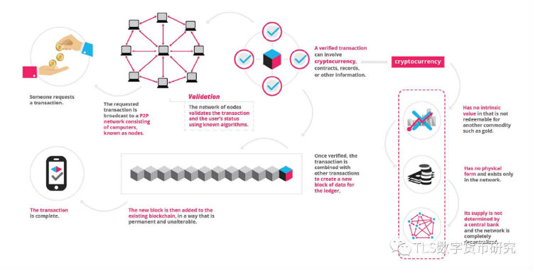 很多人就会问了:如果没有了权威的中心化代理,怎样保证每笔交易的准确性和有效性呢?比如上个例子,我去买东西,钱花了货却不来,卖家也不承认订单怎么办?这里便引出了区块链运作机制-区块链是如何确认及保护交易的?