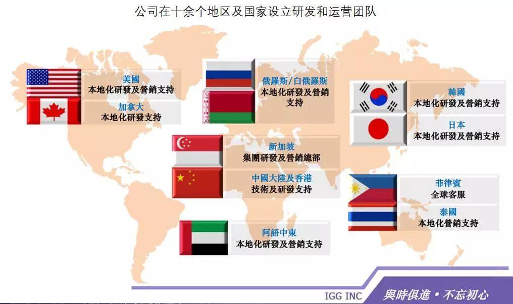 公司总部设在新加坡(税收优惠),在美国、香港、中国大陆、加拿大、日本、韩国、泰国、白俄罗斯及菲律宾设有分支机构,客户遍及全世界200多个国家和地区,是一家面向全球的游戏开发及运营公司。
