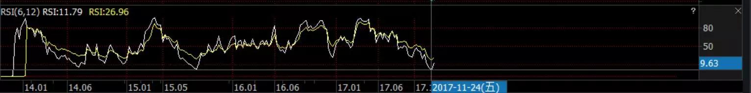 相对强弱指数RSI是根据一定时期内上涨点数和涨跌点数之和的比率制作出的一种技术曲线,能够反映出市场在一定时期内的景气程度(我认为投资者非理性的行为对股市具有一定程度的影响)。