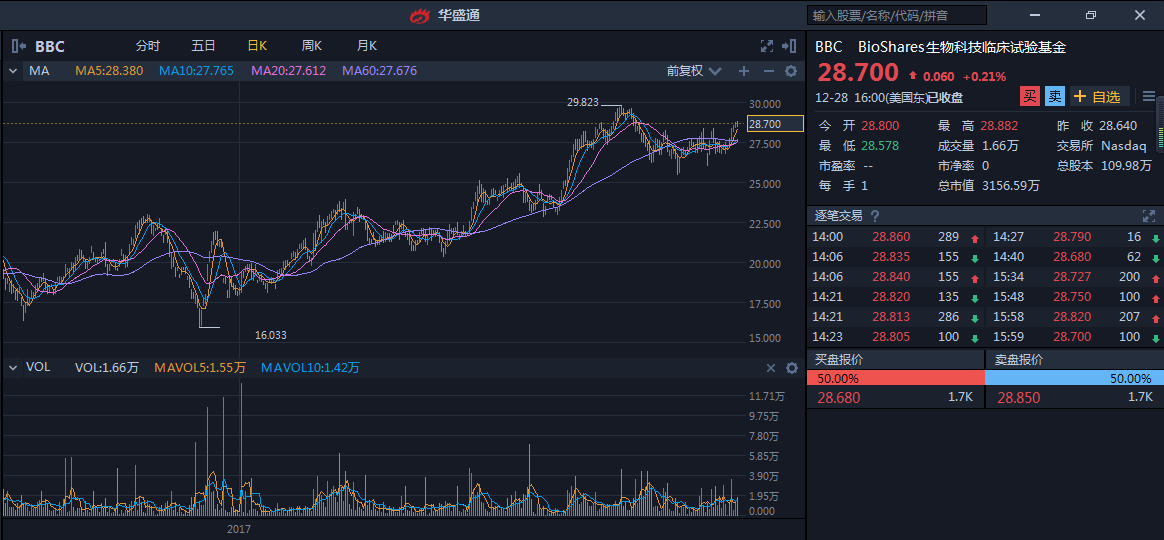 首先是生物科技ETF-BCC。如果论升幅, 这只BBC在2017年的回报挺可观的, 报酬率有4成多,但是缺点是规模比较小, 只有3千多万。