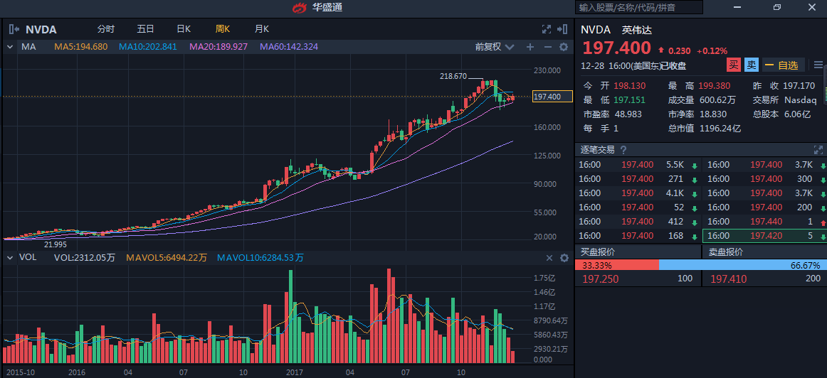 NVDA:未来的世界很明显的是向人工智能发展, 而这会需要用到强大的运算能力, 这时NVDA的价值就体现了, 所以可以侯低收集一下。如果大家有留意, 会知道比特币等加密货币的暴升带动了这些显卡商的销量,而同业两巨头NVDA又明显优于AMD, 从股价可以看出来, 而且技术和份额NVDA也领先了很多,