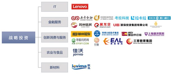 公司战略投资以长期持有为目的,聚焦于战略方向购建和优化投资组合,打造支柱型业务;公司已投资20余家企业,包括中国最大的个人电脑公司Lenovo,中国最大的租车公司神州租车、中国领先的互联网金融服务公司拉卡拉、中国最大民营口腔服务连锁品牌拜博口腔、中国最大水果全产业链公司佳沃鑫荣懋等。目前公司的战略投资聚焦于金融服务、创新消费与服务及农业与食品三大领域,并持续关注海外资产投资。