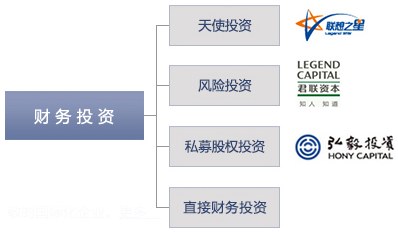 财务投资以财务回报为导向,选择合适的产品与标的组合投资。其中,联想之星是中国领先的天使投资机构,君联资本和弘毅投资作为中国最早进入风险投资和私募股权投资领域的企业之一,均已成为业内顶尖基金。