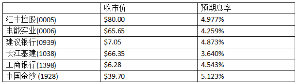 作为内地机构投资者的投资对象,除非股票增长潜力相当高 (如腾讯等科网股份),否则他们仍会倾向于派息比较稳定的公司(内地相对上亦比较少此类型公司,因公司倾重于股价增长多于息率水平),汇控(0005)便是一个很好的例子。
