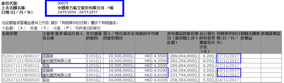 把时间拉近到两个月前,国内私募大佬重阳投资的裘国根也开始学巴菲特增持航空股。在2017年11月14和17日分别增持中国东方航空股份(0670.HK)至6.2%。