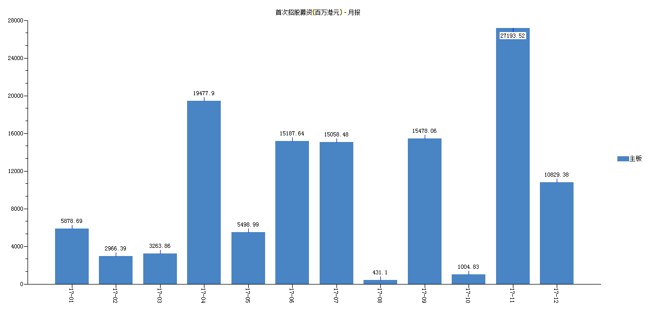 12月共有14只新股(剔除转板)于主板上市,首发募资总额108.29亿港元,较上月有所下降。