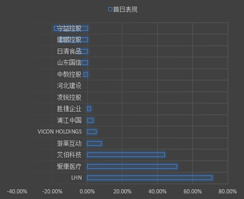 整体来看,首日平均表现为+9.99%,较上月有所下降,主要受一些旧经济新股拖累。Top3为LHN、爱康医疗、艾伯科技,首日涨幅分别达71%、51%、44%,且一手中签率分别为100%、60%、30%,具有较好的赚钱效应。