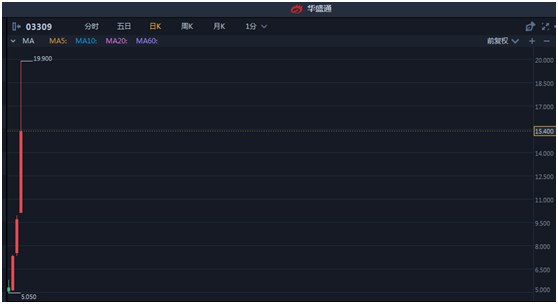 因此,公司上市后第二天大涨43.84%,之后一个交易日上涨32.38%,1月18日更是飙升58.27%,最终三天累计涨幅超过200%,最高股价接近20港元,达到19.90港元。