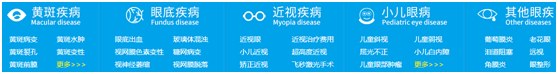 公司设九大专科,包括:白内障、准分子激光、眼底病及玻璃体视网膜、眼角膜与眼表、青光眼、斜弱视及小儿眼科、眼睑及眼整形、针炙辅助治疗眼疾和医学验光配镜,为患者提供全面眼睛检查及专科眼疾治疗。
