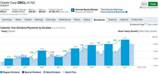 甲骨文在2012至2013年曾被迫削减股息,但公司在之后五年的年均股息增速超过20%。现金流充裕的甲骨文大力回馈股东,这对看中股息增长的投资者来说是个好消息。