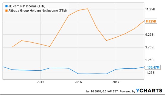长期关注中国两大电子商务巨头的投资者们都知道,京东在物流投资方面一直不遗余力。彭博社指出,去年7-9月,京东地区新增了2150万平方英尺的仓库面积,这个面积几乎和一个摩纳哥一样大,而京东的仓库面积仅增长了五分之一。积极的扩张使得京东在内部的交付部门在2017年的年收入中录得300亿元人民币(合46亿美元)的收入。相反,阿里巴巴在去年之前依靠第三方满足物流需求,这就是一些市场参与者一直利润不佳的原因。现在京东准备牺牲短期利润来确保长期的优势。
