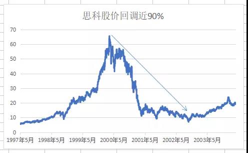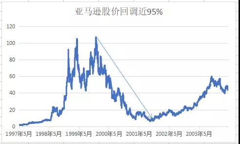 但就算是这些伟大科技企业股票,在遇到危机时,也几乎在一夜间变成废纸。比如苹果、思科股价都从高点回调了近90%,而当时美国最大的网上书店亚马逊,股价甚至从100美元下跌近95%。