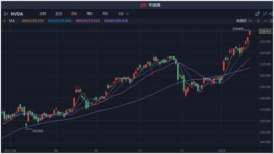 虽然2017年末经历了一波矿难,但是也只是放慢了显卡涨价的速度,随着更多瑞波币、以太币的火爆,显卡价格一涨再涨,两家公司的股价在这期间也是屡创新高,英伟达昨晚又是上涨2.23%,再次创下历史新高,股价达到238.91美元;AMD昨晚也是上涨2.29%,收盘价为12.94美元。