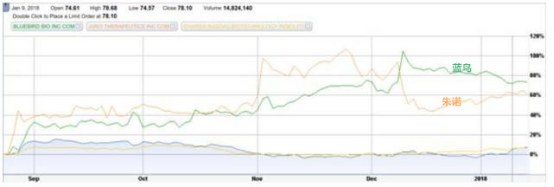 图:2017.08.24-2018.01.12期间吉列德收购风筝药业相关公司股价走势图