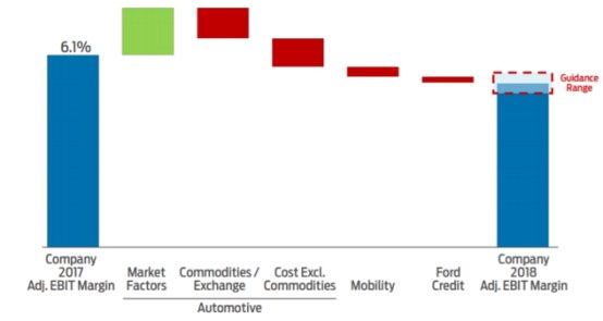 部分基于对商品价格和汇率消极影响的考虑,福特预计公司2018年的息税前利润率将同比下滑。