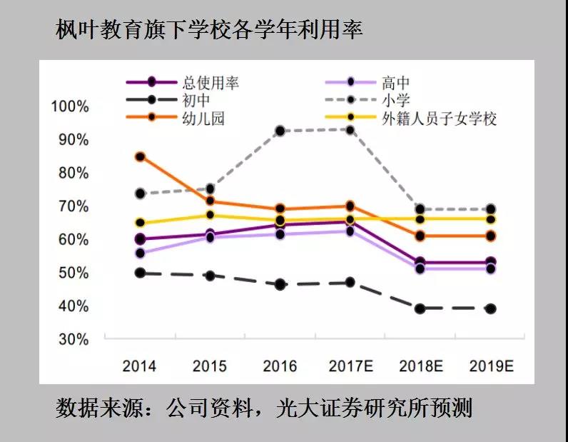首先,学费的增速是非常困难的。我们看到枫叶和宇华过去三年的学费是非常稳定的,枫叶的平均学费甚至是下降的。这和行业内各公司的收入增速非常不匹配。