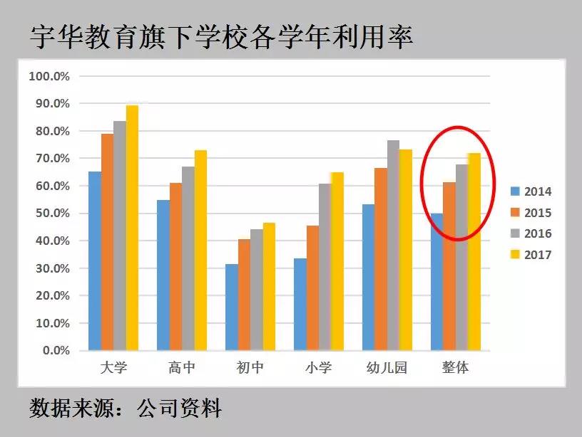 学费不能提高,要实现行业的扩张,增加入学人数便是不二之选。各教育公司可以通过增加学校利用率或者学校数目做到这点。