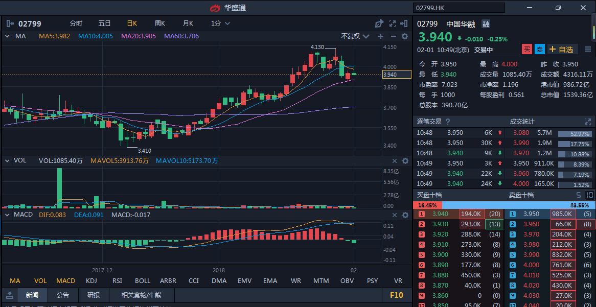 截止发稿,中国华融(HK.02799)股价上涨,涨0.509%,报3.950元。受近日中国证监会为深化境外上市制度改革,开展H股全流通试点的影响,短期有望增加有关股票的供应量,导致控股股东出现一定的抛售压力,致使相关股份股价受压。因此,投资者应当警惕短期内的投资风险。