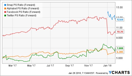 2018年可能会是Snap重新崛起的一年。目前的股票价格基本已经体现了大多数的看空观点,但随着数字营销行业日益增长的TAM(完全可寻址的市场)以及管理层更好的经营,可能会在2018年实现反弹。因此,该公司当前的估值是否已经处于底部即将进入今年的全面反弹呢?