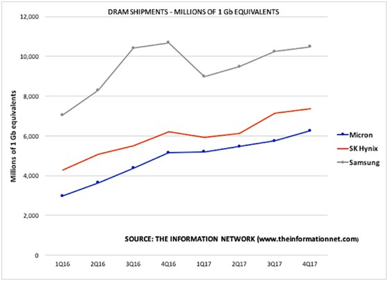 我们再看看美光在现有产品市场的竞争格局,主要是三星和海力士。美光上调了Q2的业绩展望,营收72亿美元-73.5亿美元,之前是68亿美元-72亿美元。