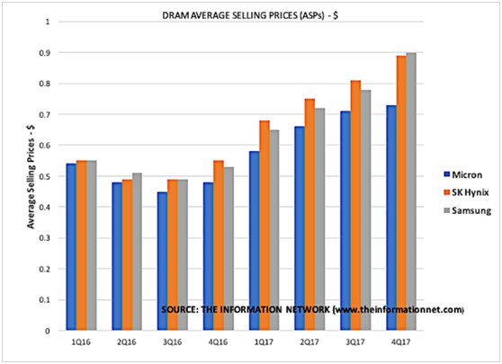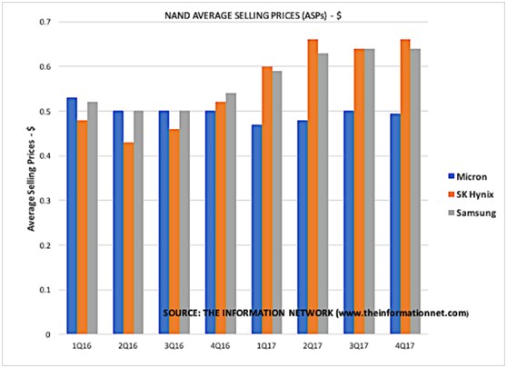 图4和图5可以看出DRAM的平均售价仍在上升,但是美光的涨幅最小,NAND 平均售价增幅不如其他两家公司。