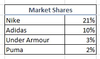 目前安德玛的市场率仅高于2%的彪马,说明获取更大的市场份额是安德玛的当务之急。