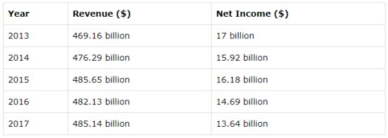 如上图所示,过去五年中,沃尔玛的营收数据十分稳健,而净利润在稳步下滑,净利润下滑的原因主要是公司为了提升运营而投入较多。去年沃尔玛的电商业务业绩有很大改善,三季度净营收同比增长50%。