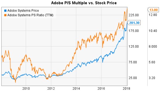 从下图可以看出,大部分时候Adobe的股价上涨都与公司估值提升有关,尤其是过去两年中。笔者认为Adobe估值在目前基础上不太可能还会有太大提升。笔者认为远期市盈率为28.25,PEG(市盈率相对盈利增长比率)为1.32就是较为合理的估值。Adobe未来股价走势将于运营表现有更高关联性。