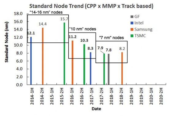 “标准节点”这个词最早是由ASML提出的,是由制造商普遍共识的一些基本参数计算的,可以视为真正的节点定义,而不是各个制造商标榜的。